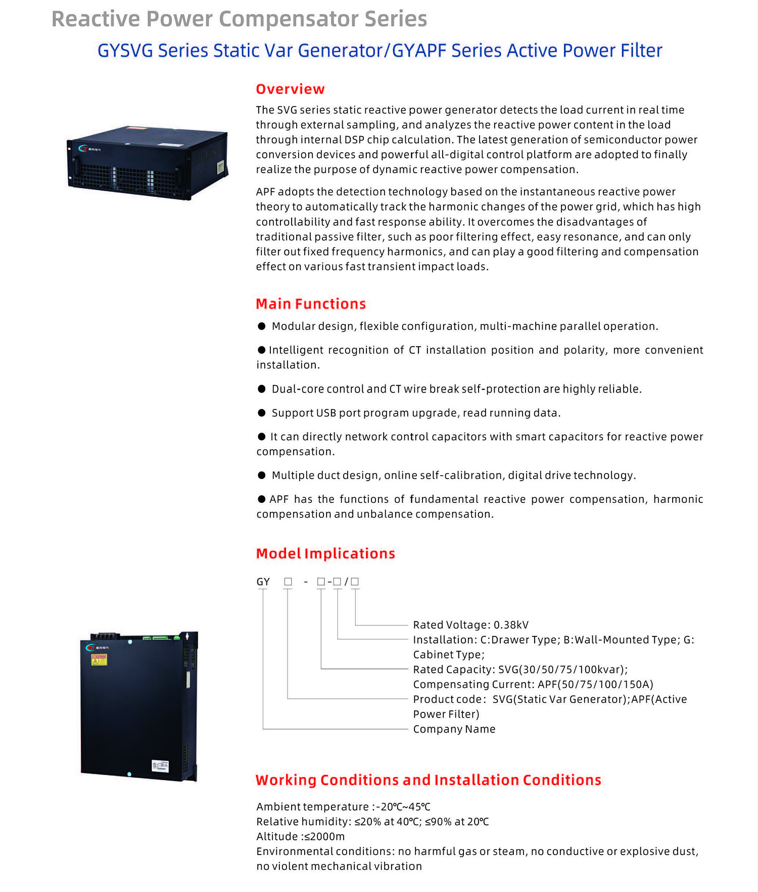 1. Amplificación de ganancia y señal: el filtro de potencia activo de la serie GYAPF, con la invaluable asistencia de componente activo, como un amplificador operativo, tiene una capacidad impresionante para proporcionar ganancias. Los productos poseen la funcionalidad dual no solo de lograr un filtrado preciso sino también de amplificación significativamente. Este atributo demuestra ser excepcionalmente útil en una amplia gama de escenarios de aplicación, particularmente cuando las señales débiles y delicadas requieren un fortalecimiento sustancial. En contraste, los filtros pasivos son limitados en su capacidad y solo pueden dar lugar a la atenuación de las señales.