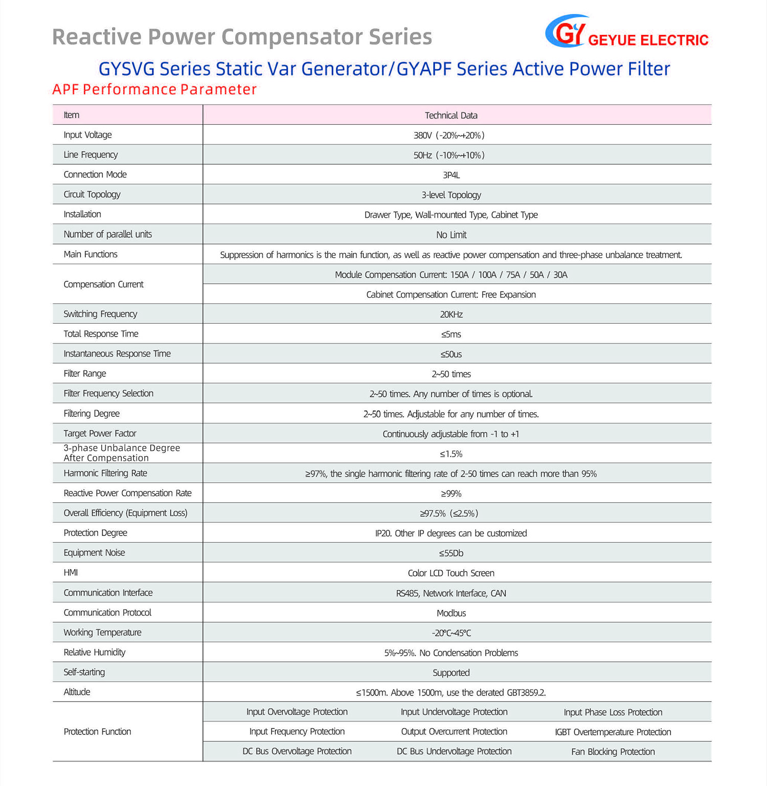 El filtro de potencia activa de la serie GYAPF producido por Geyue Electric tiene las siguientes ventajas notables en comparación con los filtros pasivos en el mercado: