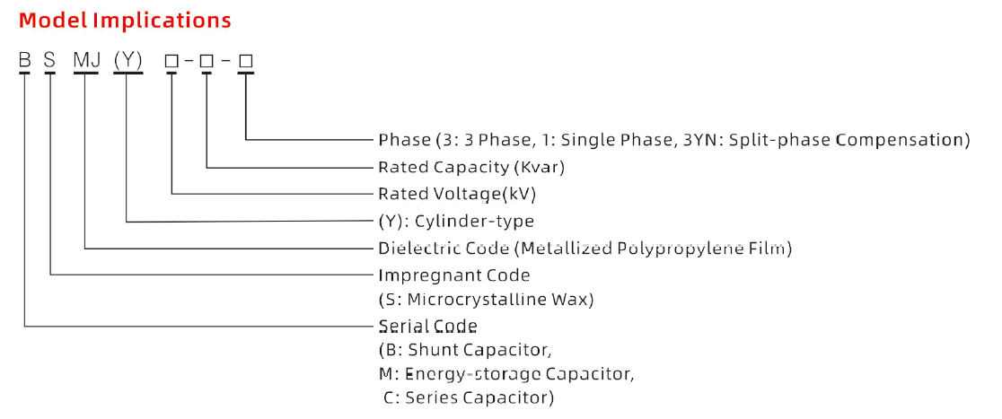 Si bien los estándares nacionales de la industria mecánica china no especifican explícitamente la designación de serie exacta para los capacitores en derivación autorreparables de bajo voltaje, sí regulan estrictamente cómo los fabricantes deben nombrar una serie de capacitores de potencia usando disposiciones de letras. BSMJ es simplemente una designación común de series de capacitores de potencia que cumple con las reglas de nomenclatura estándar de la industria.